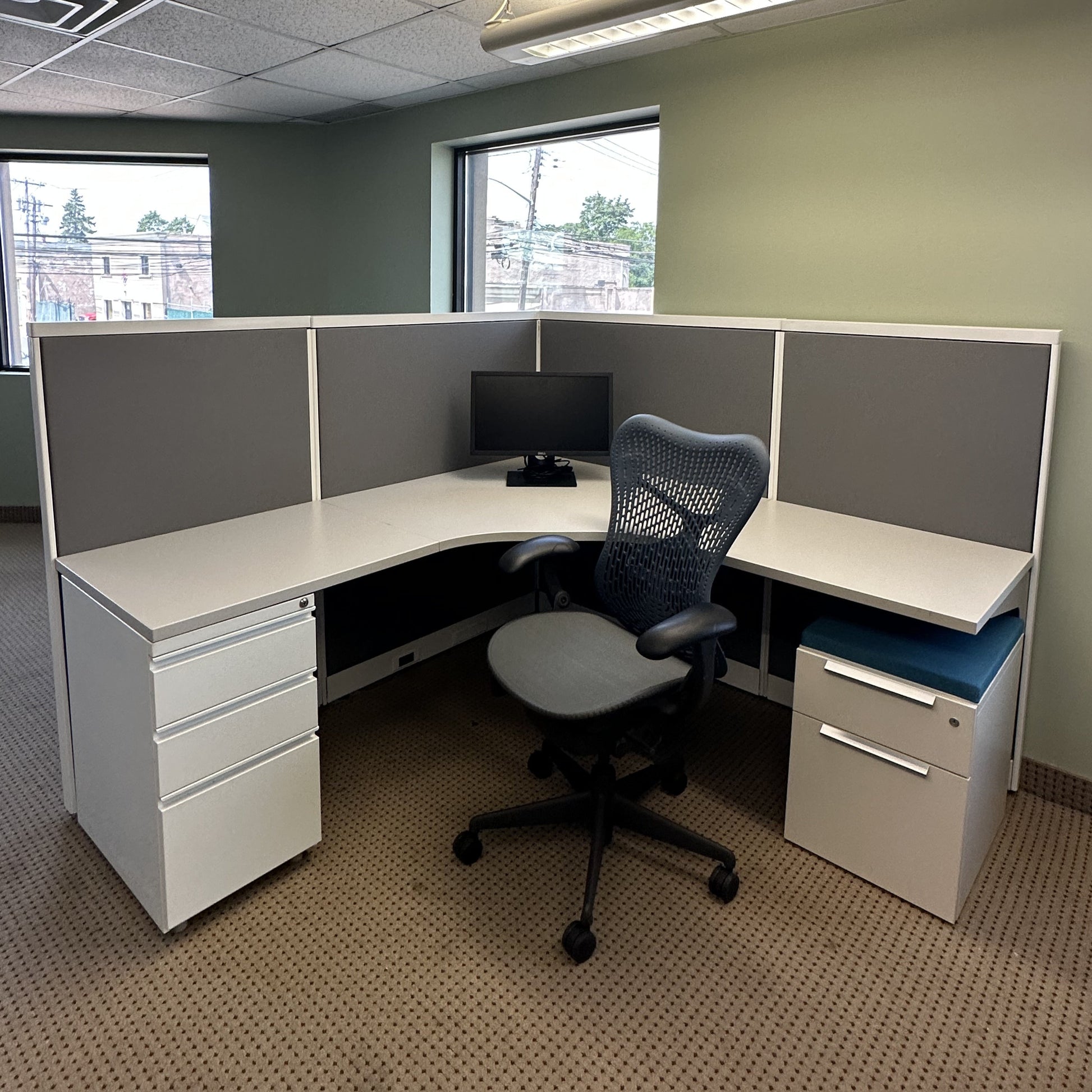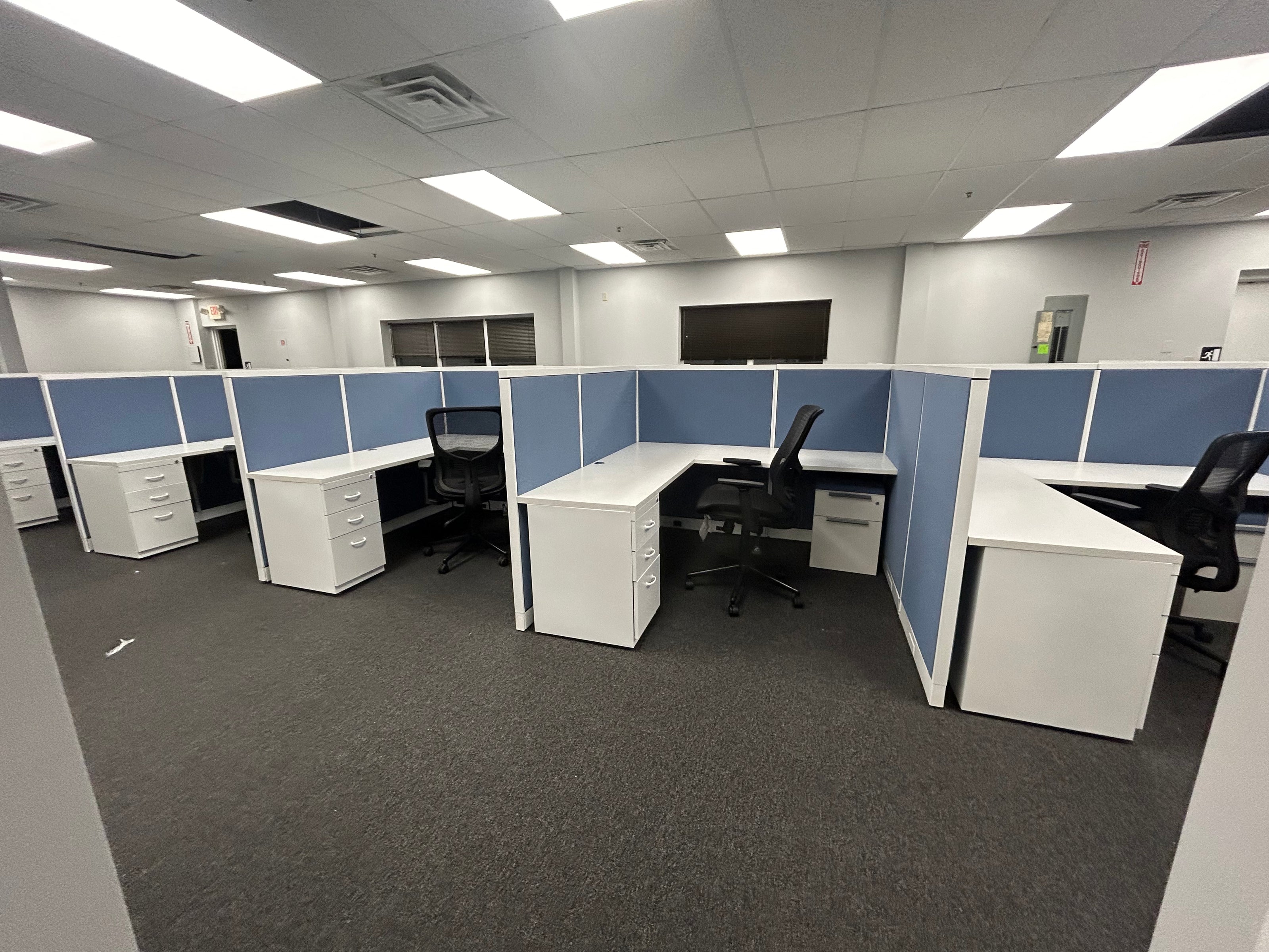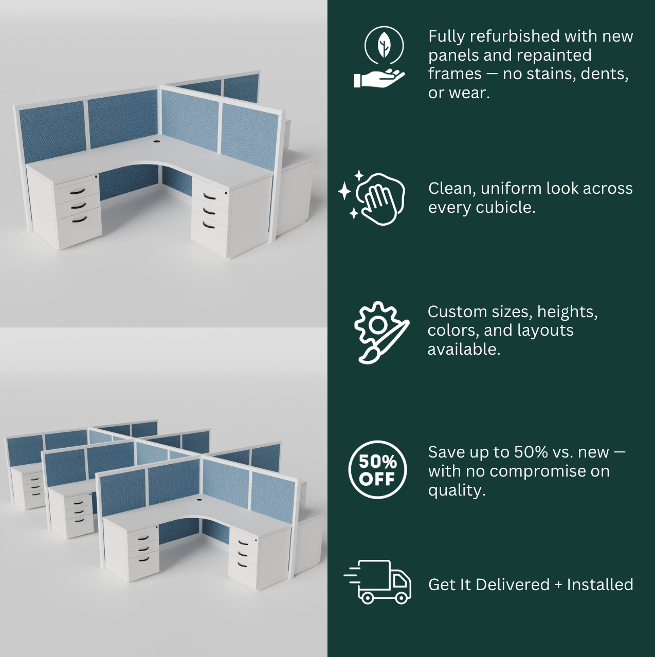 We give used cubicles a makeover! We swap out all the used panel boards with new one's and repaint the frames, so you get cubicles that look and feel brand new – goodbye stains and scratches!
