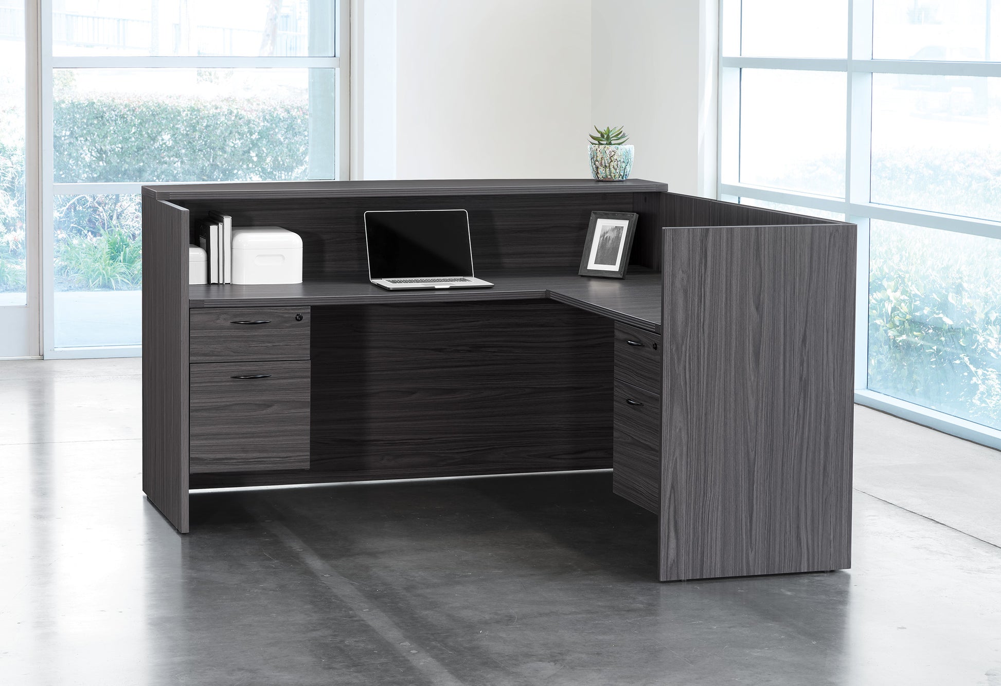 Napa Reception Station 77X77X42H in Slate Grey Dimensions: 71W x 77D x 42H