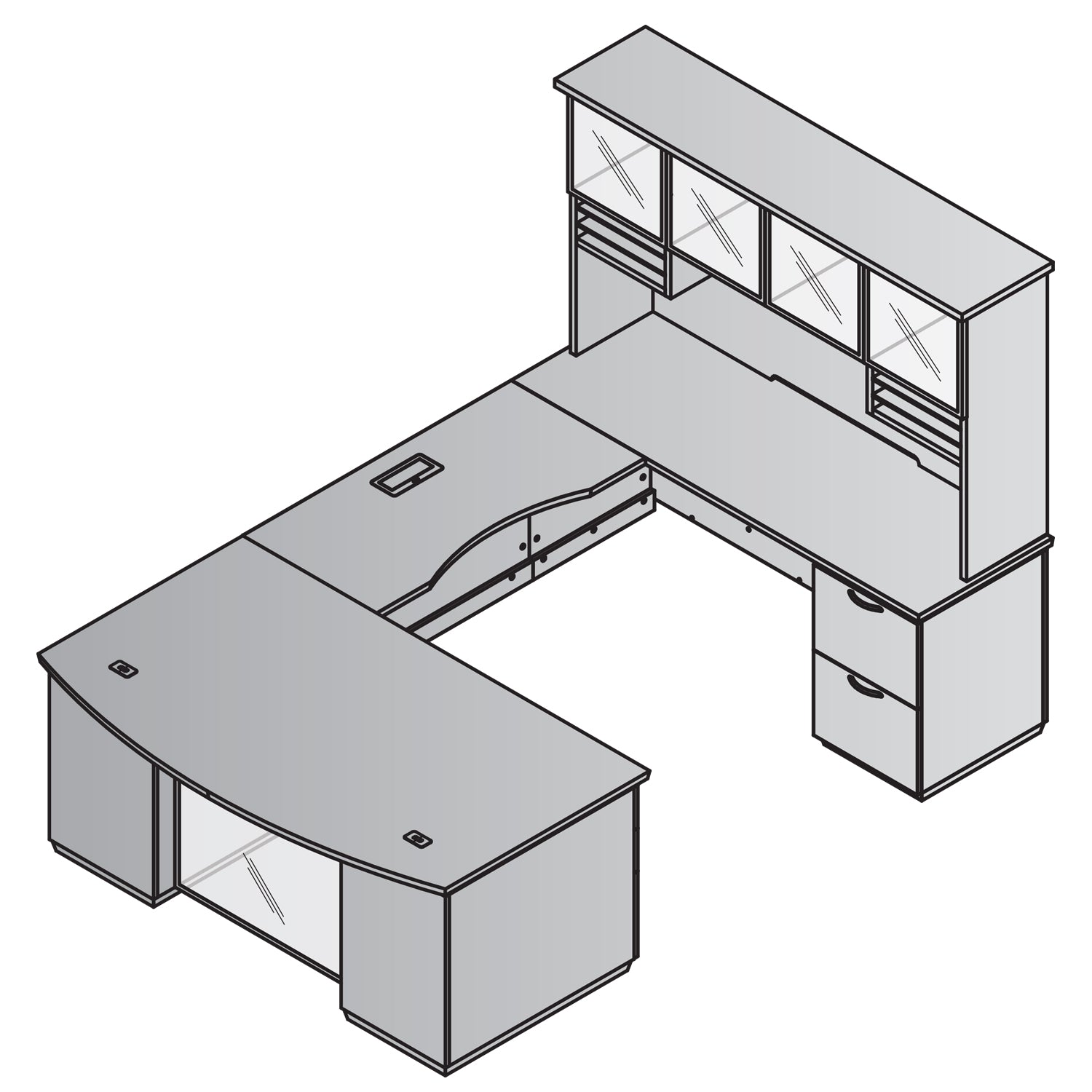 Tuxedo U-Shape w/ Bridge on Right + Hutch 72x114