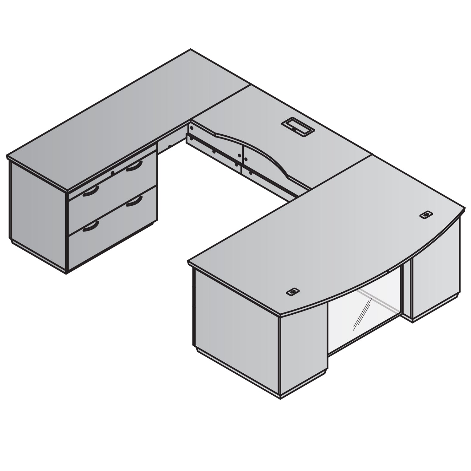 Tuxedo U-Shape w/ Left Bridge + Lateral File Pedestal 72x114