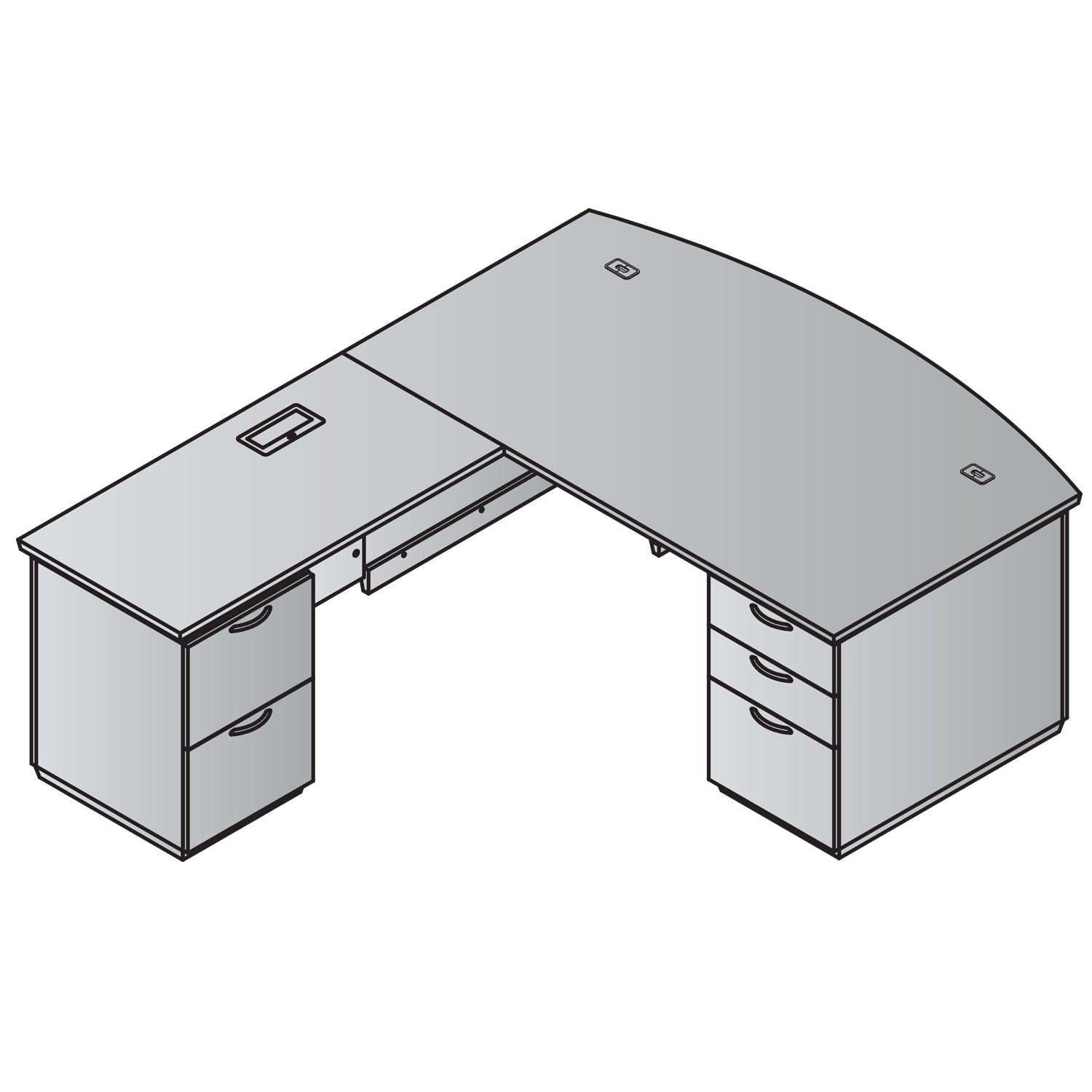 Tuxedo L-Shape w/ Bow Front Desk and Left Return 72x90